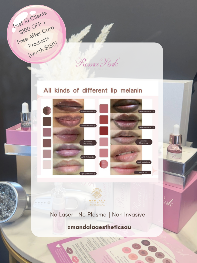 An advanced melanin-neutralising treatment designed to correct and balance uneven pigmentation on both lips and skin. Using specialised RomaPink™️ techniques, it helps break down excess melanin to visibly brighten, soften, and restore a more even, natural tone over time.